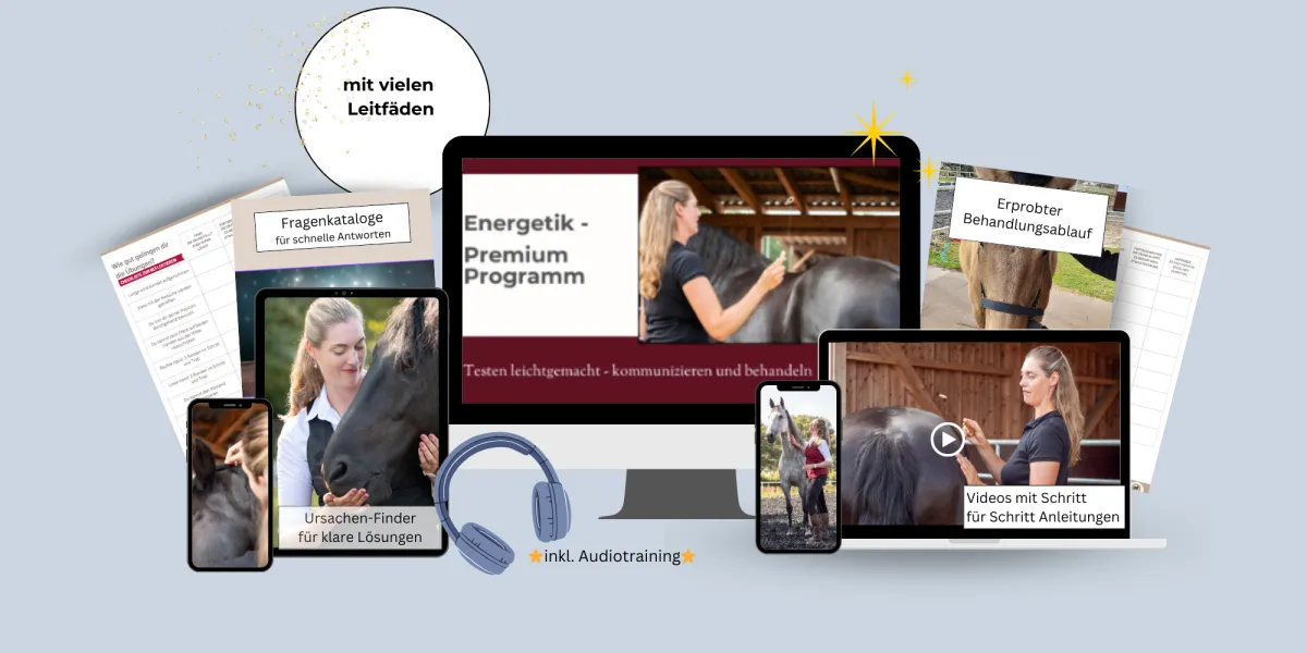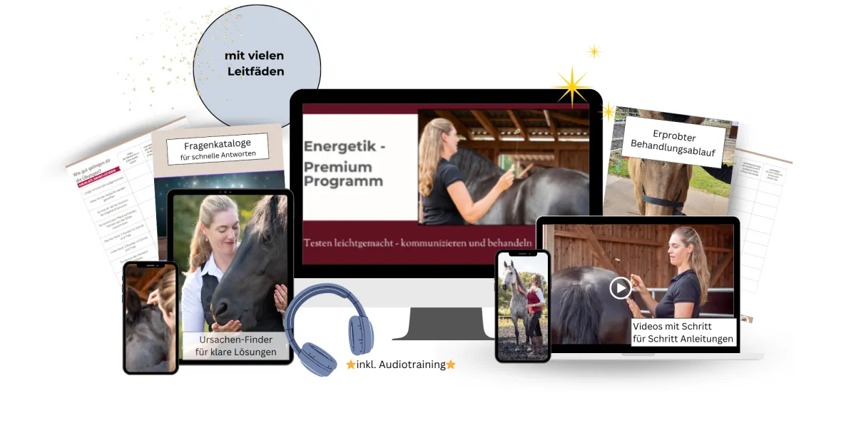 mit allen Video-Lektionen, in denen du Schritt für Schritt lernst, wie du mit deinem Pferd energetisch kommunizierst und es ganzheitlich behandelst.